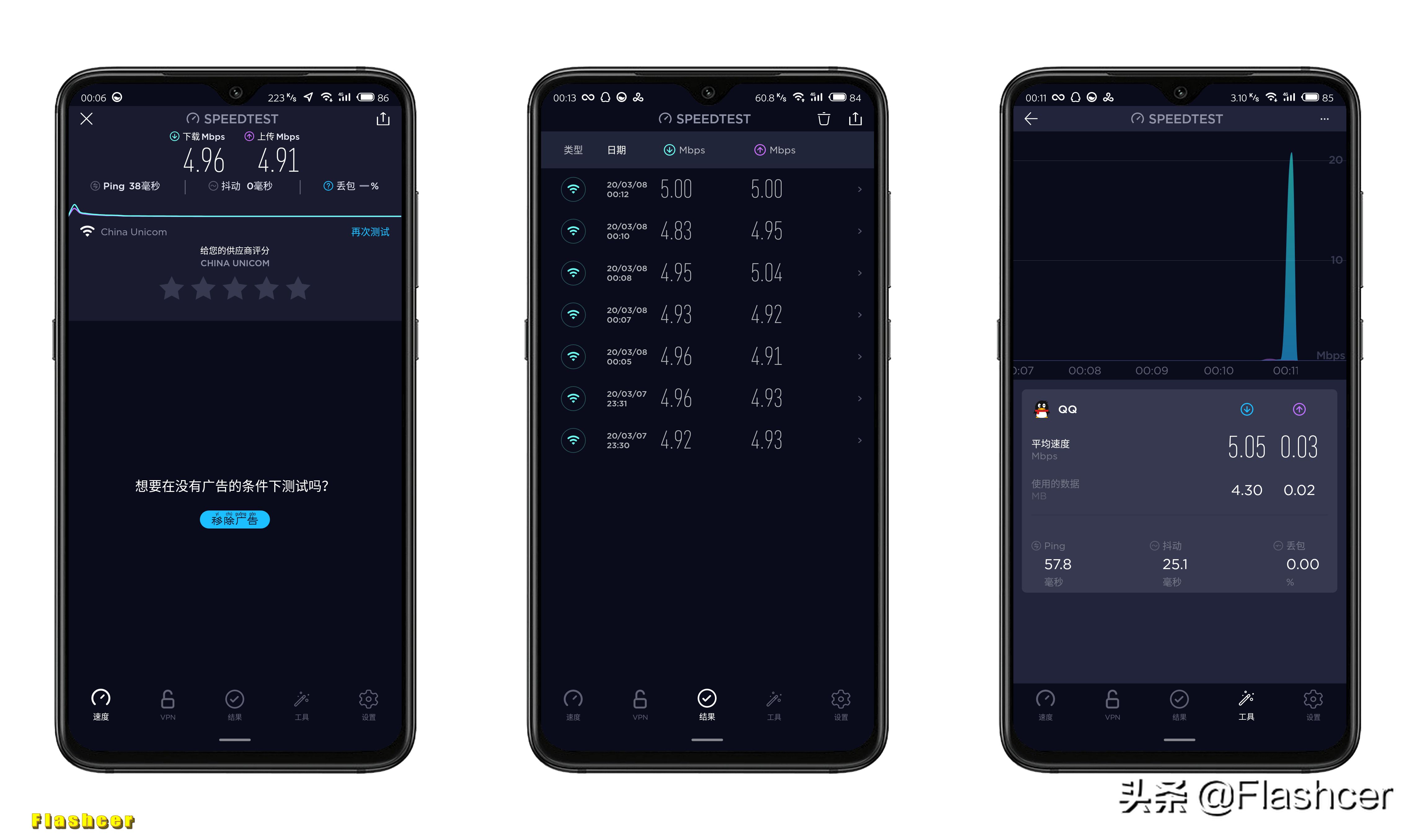 按照惯例一如既往地来测试个网速,我家里100M宽带实测最大也就5M,网速有没变快暂时不清楚,但信号确实增强不少,同一设备,同一位置,原来用的路由器只有一格两格的信号,现在信号强度满格。