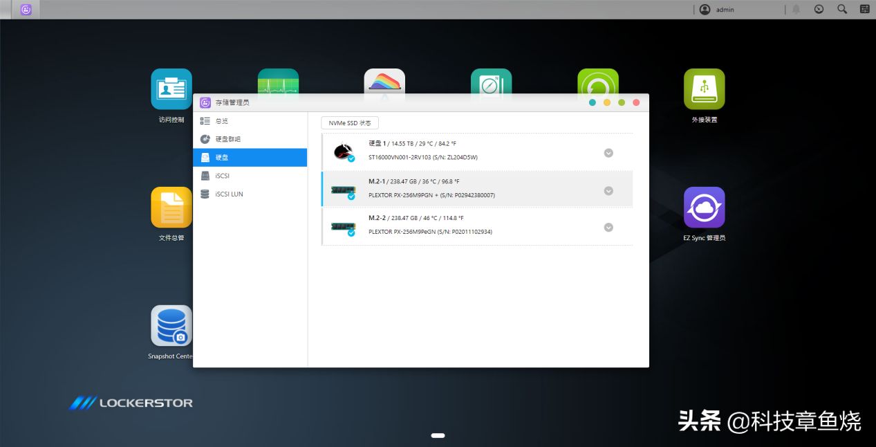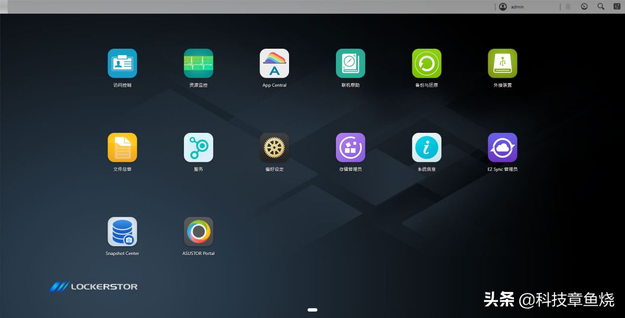 在输入默认初始用户名和密码(admin)之后,就能看到华硕AS6604T的ADM系统用户界面。界面整体非常简约直观,所有用户需要用到的软件和设置都直接被部署在主页上。