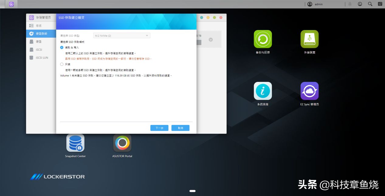 另外,在安装硬盘之后需要到界面中的“存储管理员”中选择“硬盘群组”进行设置,等待一段时间之后加速效果便可生效。