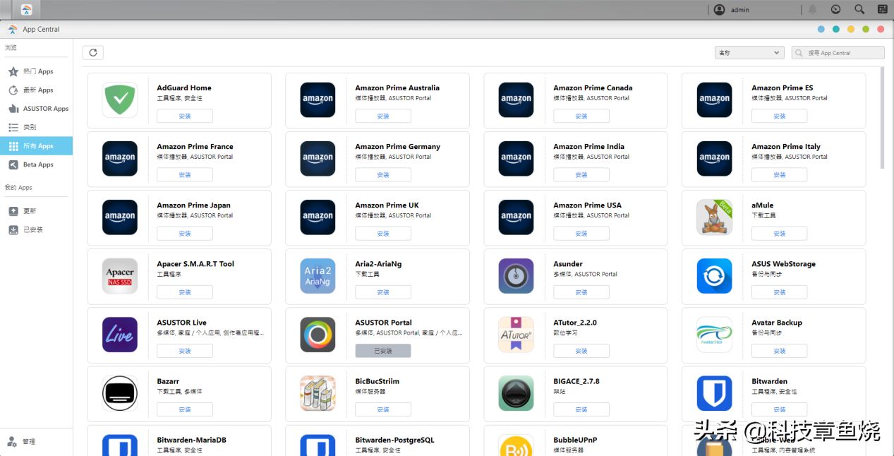 当然,除了文件传输用途以外,华硕AS6604T的ADM系统中的APP商店提供了相当丰富的软件安装,下面举几个不错的应用。