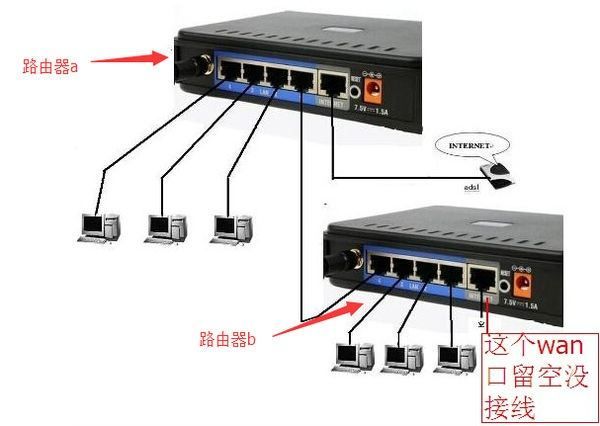 注:先断开a、b路由器的连线,等待路由器b设置完成后,在连接。