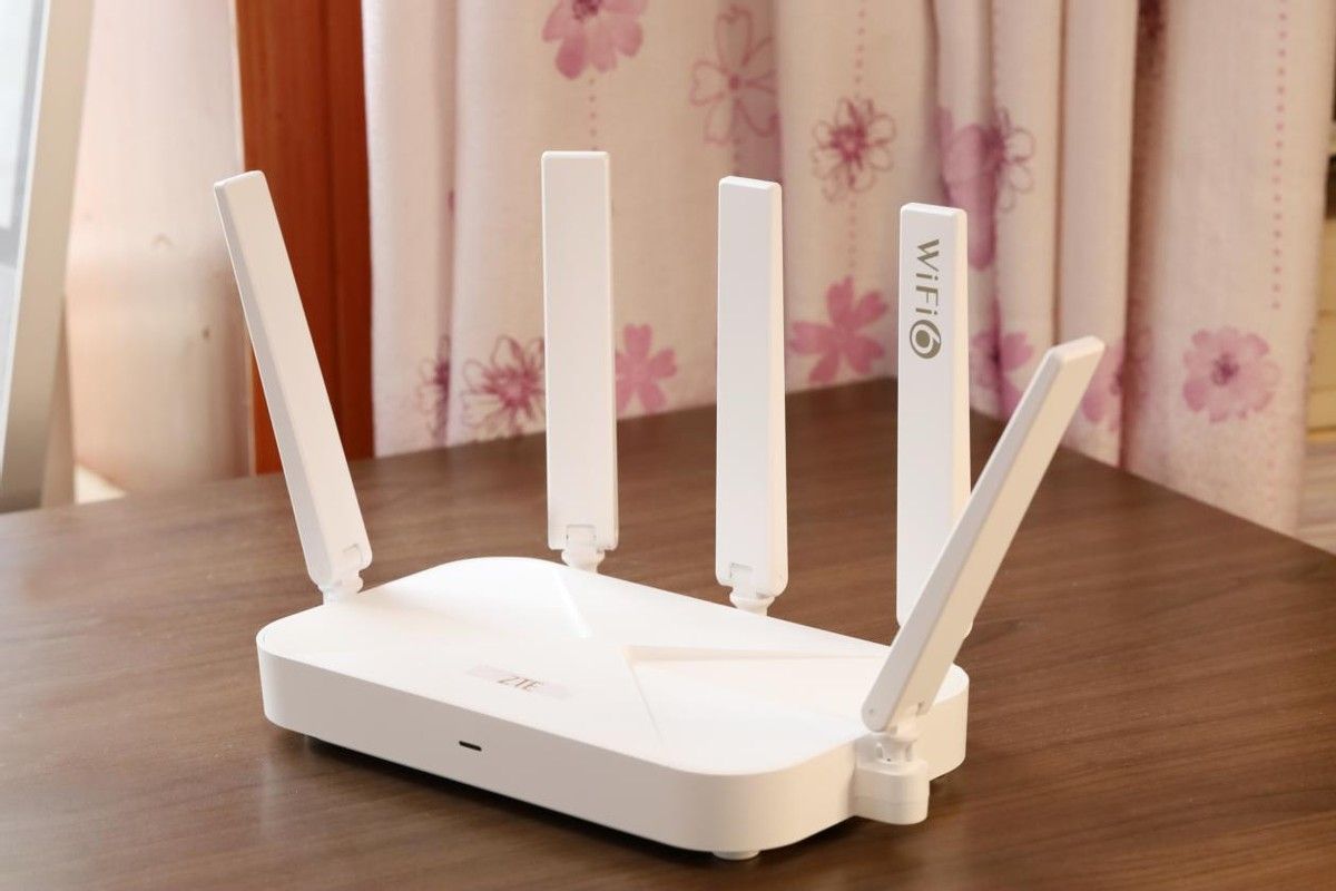 中兴AX3000巡天版设计有5根扁平的天线,其中一根天线上印有wifi6标识,这些天线支持180度折叠,360度旋转,可以很方便地调节天线的位置达到最佳的全屋信号覆盖。