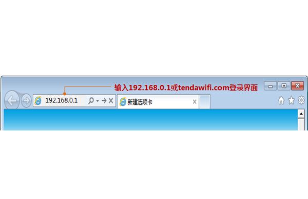 2、电脑上打开浏览器,在地址栏输入tendawifi.com或192.168.0.1,然后按回车键(键盘上的Enter键)。