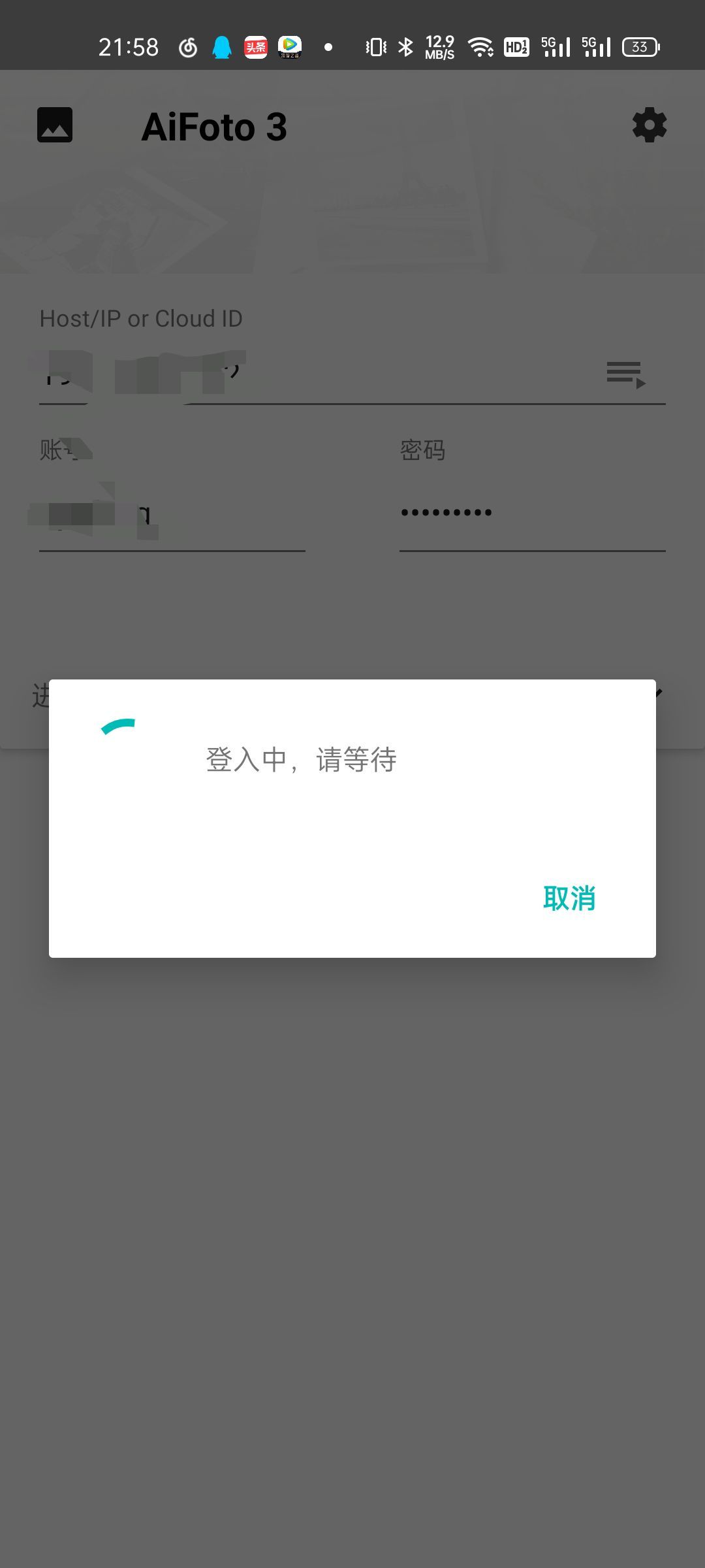 当和NAS处于同一网络情况下,进入AiFoto 3可以进行登录,输入NAS的IP地址和用户名、密码即可。