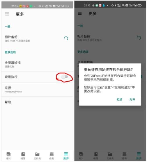 另外建议选择开启背景执行,即使AiFoto 3处于后台情况,也可以自动备份。另外,在外网环境下,通过不同的手段连接NAS后,同样可以完成备份操作。