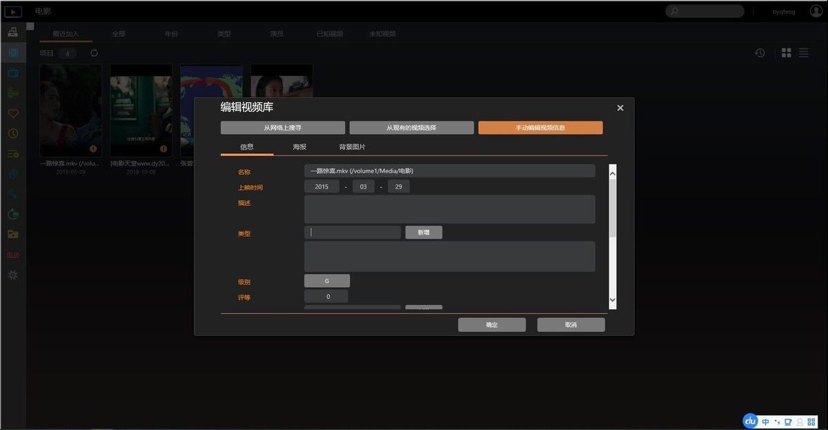 电影的编辑,包括上映时间、类型、评分等等内容,可以通过搜索电影名或者IMDB ID直接找到影片的相关信息,这样就不用自己手动输入了。后续也会根据这些内容对影片进行分类,你可以根据上映年代、类型、演员查询相应的影片。