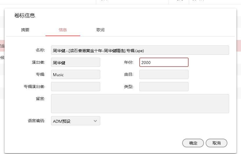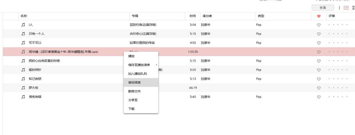 不过如果你下的是一个合集CD,往往是没有相关信息的,比如我下的周华健和罗大佑的2个300MB左右ape格式CD。这个目前在AiMusic上我没有找到编辑选择。