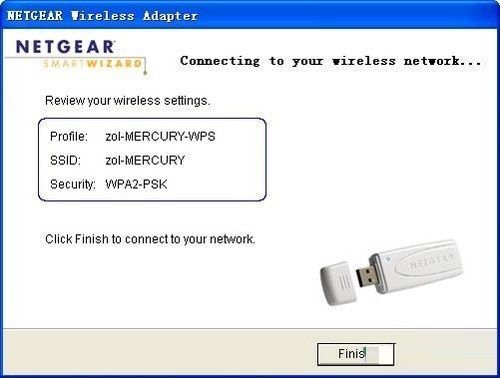 连接界面,连接成功,点击“Finish”退出此界面,此时无线客户端(无线网卡)的用户就已经获得WPA2级的安全加密连接了。