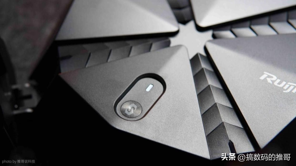人性化的是,为了让大家更加直观了解路由器工作状态,正面配备有“一键易联”指示灯,也叫作一键易联键。指示灯常亮的话,说明网络部署完毕,可以直接连接wifi使用。蓝色常亮的状态下则是意味着锐捷天蝎工作正常,慢闪的话说明设备未联网/MESH配对中,熄灭说明没有通电,快闪说明设备启动汇总。在“一键易联”的对面还有氛围灯,常亮说明已经启动游戏加速状态,熄灭说明未开启游戏加速,可以说十分直观。