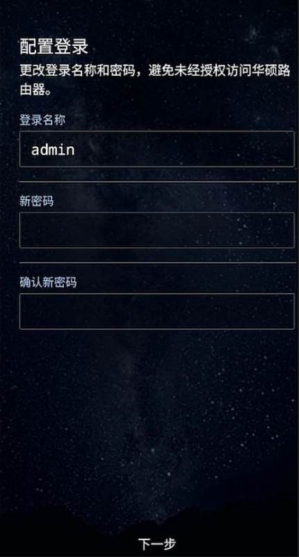 10、设置作为登录路由器设置页面的账号和密码,点击“下一步”