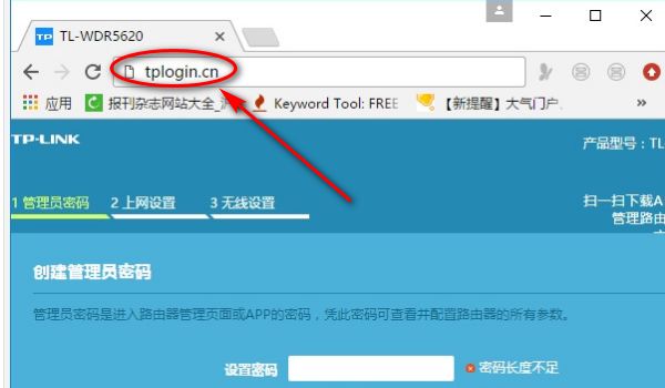 4、打开电脑中的浏览器,输入上一步查询到的无线路由器管理页面网址。