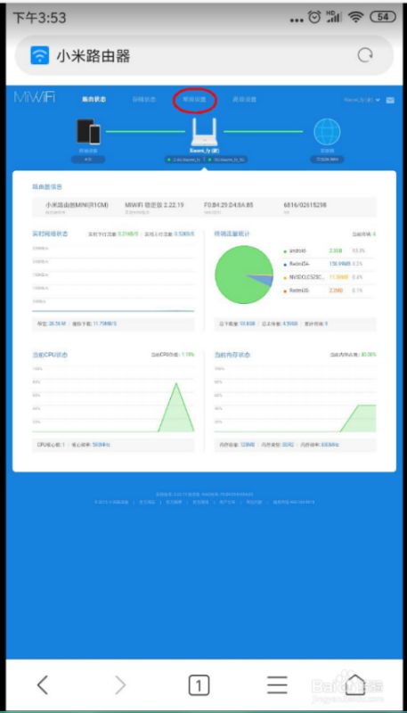 9、首先默认看到的是路由状态,如下图。在上方有“常用设置”点击。