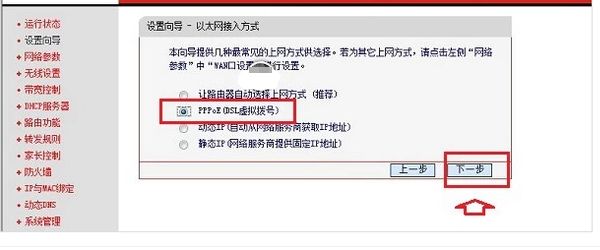 2.选择以太网的接入方式,一般我们都是选择PPPoe拨号上网方式。然后继续下一步。