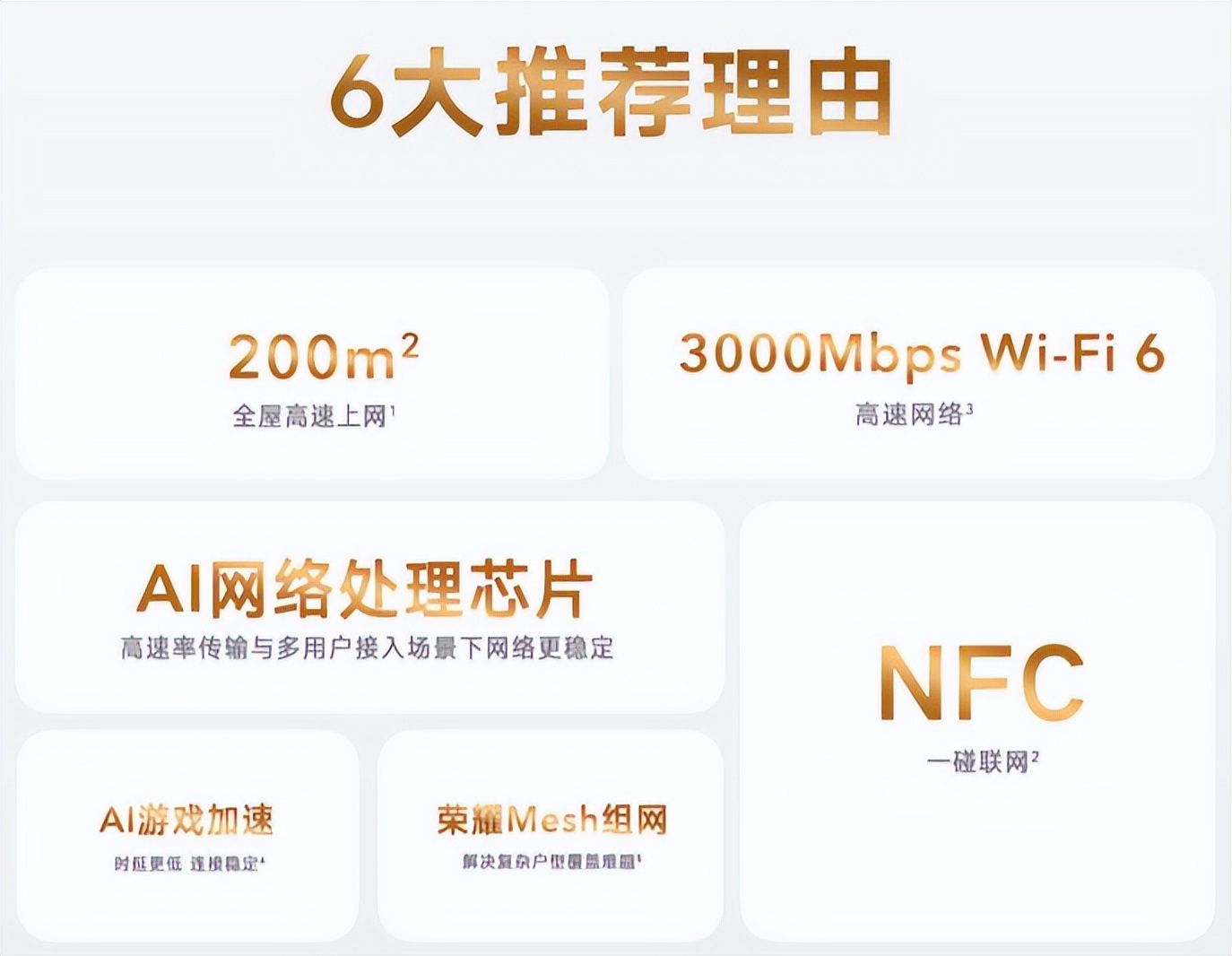综合点评:以上就是本期5款WiFi 6路由器推荐的全部内容。随着智能手机、电视等对网速的要求越来越高,升级一款WiFi 6路由器确实是当务之急。当然了,在更换WiFi 6路由器的同时,别忘了检查你的网线与光猫是否符合千兆宽带的要求。