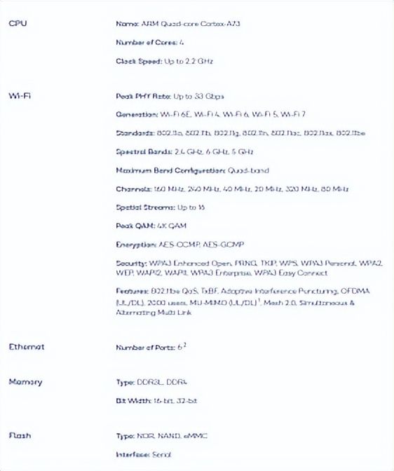 所以,Networking Pro 1220平台,就是高通第三代路由芯片系列里的顶级家用芯片,相比于上一代1210,也就是小米AX9000以及同期不少旗舰路由器上的那颗,不仅提升了CPU架构,由A53升级到了A73,并因此在算力上翻了一倍,更重要是,提供了802.11be,也就是WiFi 7协议的支持——正好承接上了高通骁龙8G2在网络上的升级。