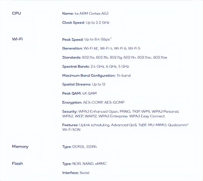 高通之前做了个比较有利于消费者的事,就是带头给路由器上的处理器也写清楚产品系列和最高主频,在此之前,路由器的处理器可着实是重灾区。