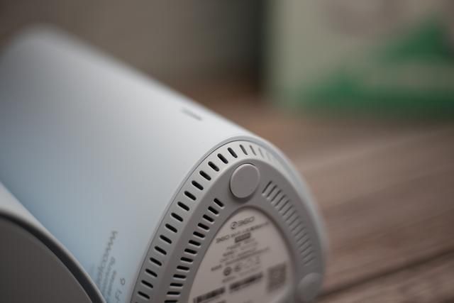 360全屋路由器V6M的左侧区域底部印刷着Qualcomm和WiFi6的标志,产品内置企业级芯片IPQ6000,4核64位A53 1.2GHz CPU搭配单核1.5GHz NPU网络加速引擎路由器性能比V5提升不少。