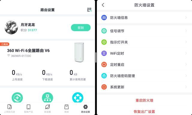 下面我们来说一下Wifi的App.安装下载跟注册那些就不用再说了吧,只要根据说明书的步骤来进行就可以了,尤其是连接WiFi的那些步骤,只要我根据说明书,基本上就是非常简单的。那么我们要讲一下这款APP什么呢,主要还是说下他几个有亮点的功能,360最强的是什么大家应该都懂,就是防火墙也就是它安全性很高,而360的这款路由也延续了它这种品质,有非常高安全性的一个功能,也就是有很不错的防火墙,360这款APP的功能上,首先我们可以监控到路由的流量使用情况,了解到我们的路由基本信息这些功能都是有的。