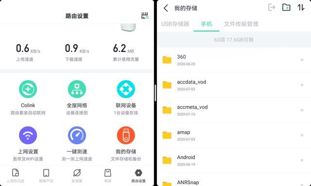 360路由的APP下一个比较好的功能就是关于那个USB2.0接口的扩展功能,虽然这个USB接口读写速度并不快但是要做一个家庭的存储内网的话,光设备可能都要上千块钱。而我们的路由有了USB接入之后,我们可以直接把这个路由连接我们的U盘或移动硬盘实现家庭分享内网的组建,而且是免费的。