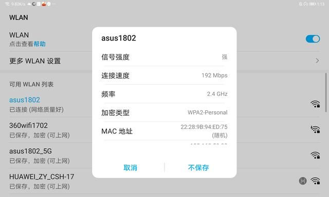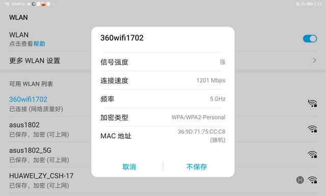 在这里再说一下关于这个WiFi的那个连接速度的问题,在硬件上这个WiFi其实最快能实现1.8GMps的连接速度,但是这个速度是受设备影响的,必须满足相关的条件才能达到这个速度,也就是说这个是个理论值要实现的话,需要你接受的是设备,支持这个协议才可以。而我的荣耀v6平板,是不能满足满速的那个协议的?所以在5G频道上最高的速度只能去到1.2GMps然后再加不上2.4G的600才能实现1.8的速度。就算2.4G他这个速度对比一些2.4G的速速度还达不到200Mps已经强上很多,这款产品长时间内已经能够完全满足日常网络需求了。