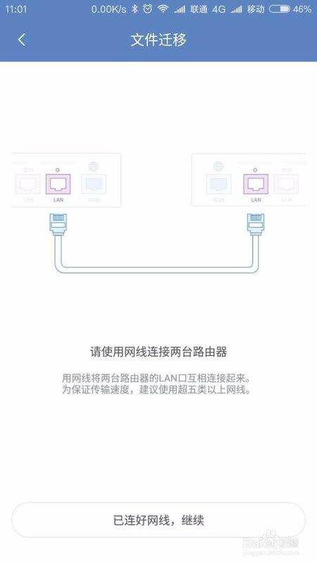 如果没有把新旧路由的lan-lan相连,APP会有提示。