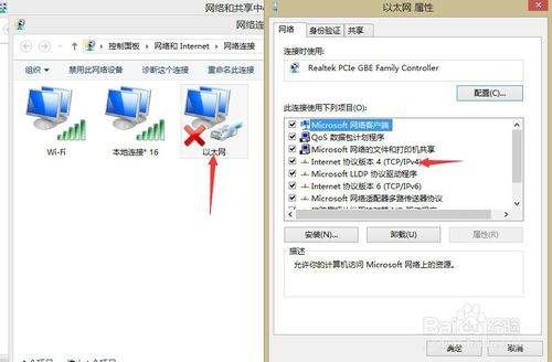 选择internet协议4设置。选择自动获取ip地址以及 DNS服务器地址。