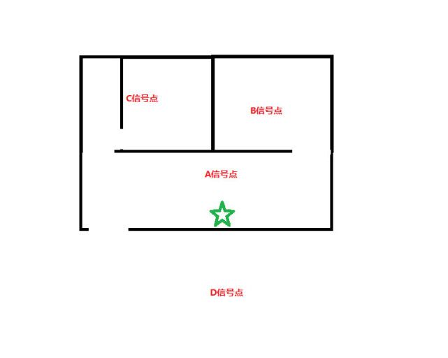 不到50平的房子,这是一个两房一厅的格局,测试点为3个。没有太好的条件,上了一层楼梯在楼梯间做了一个D点的信号测试。