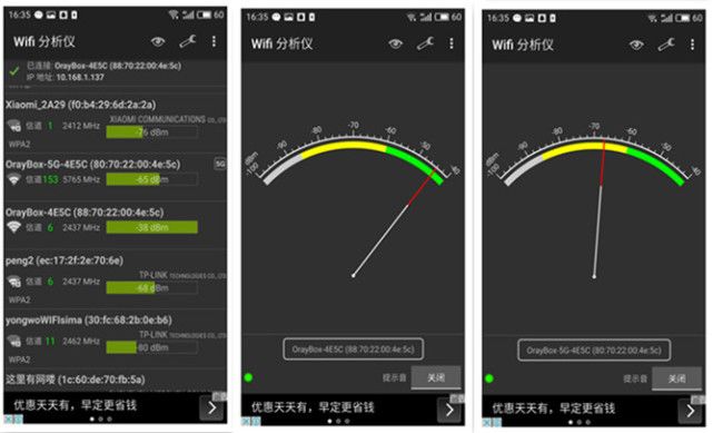 可以看到,在这个地方隔了一堵墙壁之后信号是有减弱的,但是基本上信号值变化不大。也就是说,在这个房间手机和电脑使用都是无碍的。