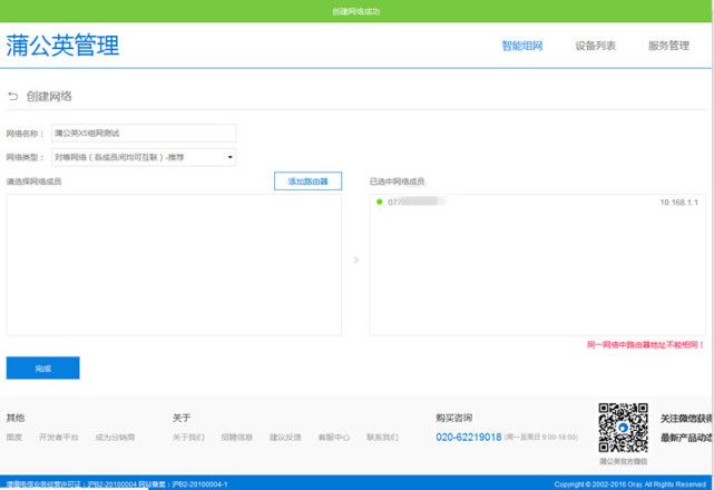 不算什么高大上系列,所以简简单单的,而且,蒲公英做路由的理念似乎到现在还是“死性不改”—还玩智能组网那一套。所以我前面才说这玩意儿我用着浪费,虽然偶尔会用到组网这个功能。毕竟在组网之后在同一个局域网下做什么事情都方便很多。