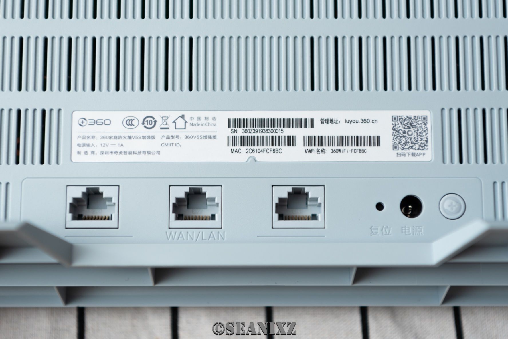 背部设置了3个网线接口,三个接口均可作为WAN/LAN使用,这样的设计非常方便,对于家中有老年人的家庭而言这个设计非常实用。