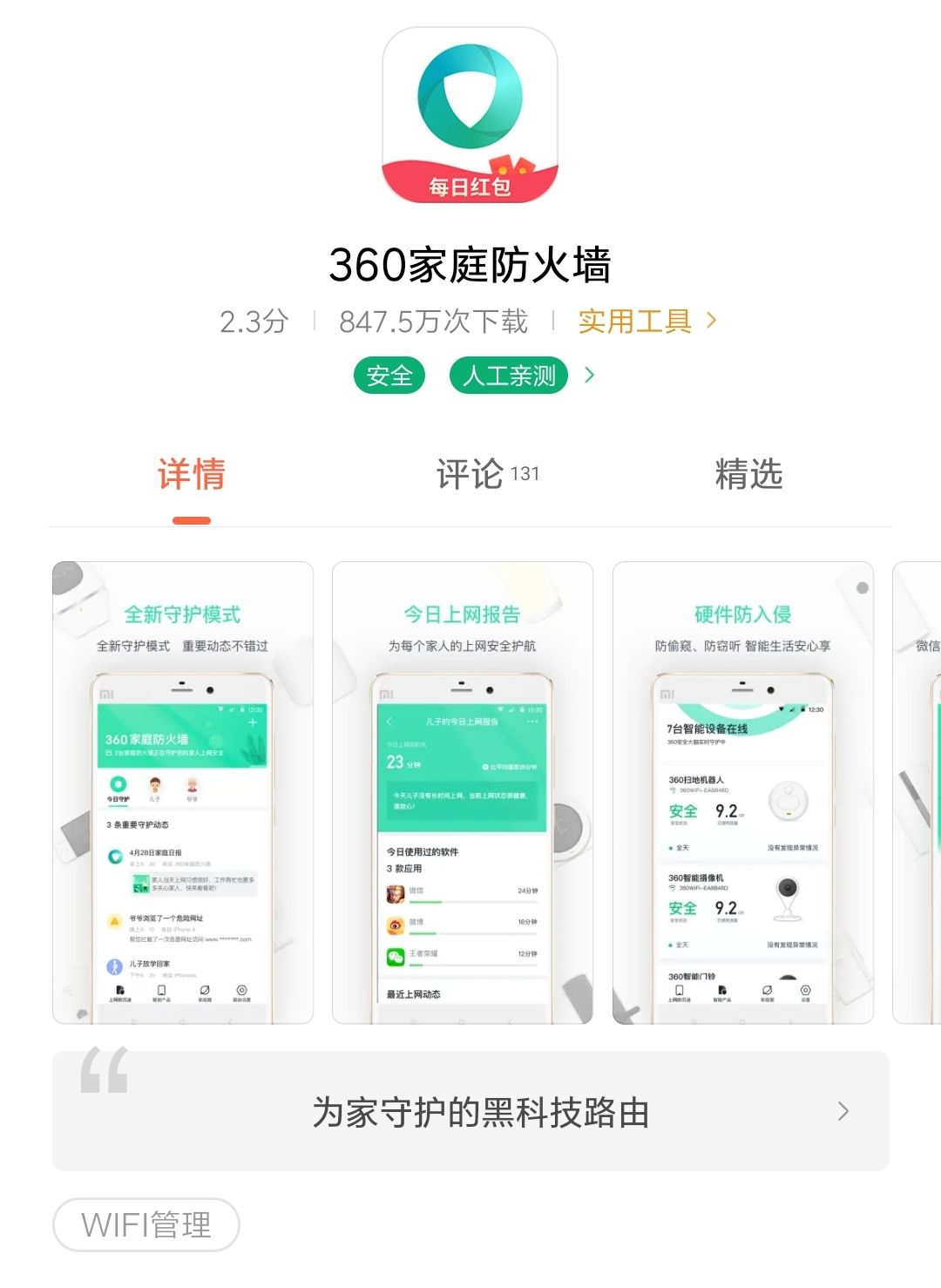 连接方面直接使用配套的360家庭防火墙APP进行配置。