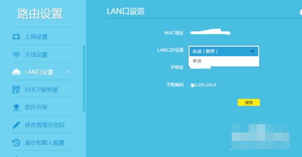 7.点击LAN口设置,这个设置ip是自动还是手动的,如图。至此就设置好了。