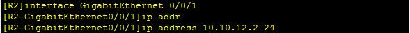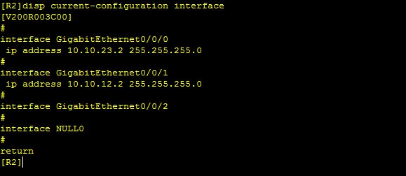 [R2-GigabitEthernet0/0/1]ip address 10.10.12.2 24