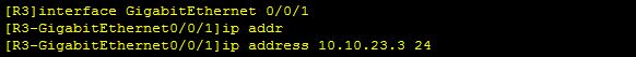 [R3-GigabitEthernet0/0/1]ip address 10.10.23.3 24