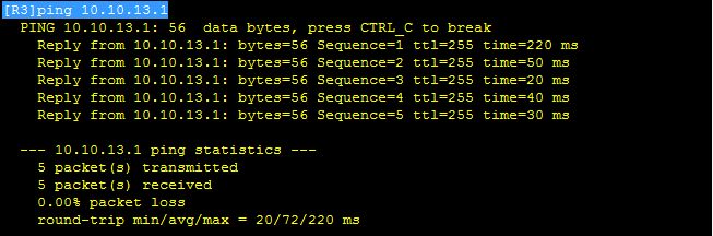 [R3]ip route-static 10.10.10.0 24 10.10.13.1