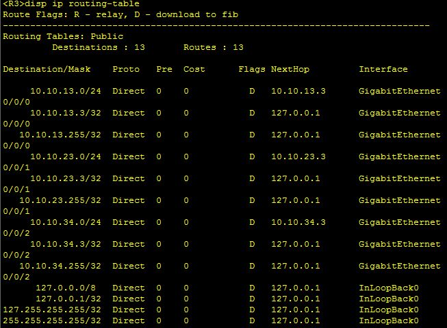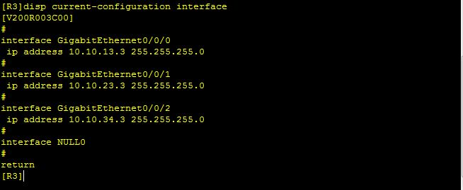[R3-GigabitEthernet0/0/0]ip address 10.10.13.3 24