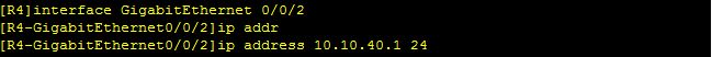 [R4-GigabitEthernet0/0/2]ip address 10.10.40.1 24