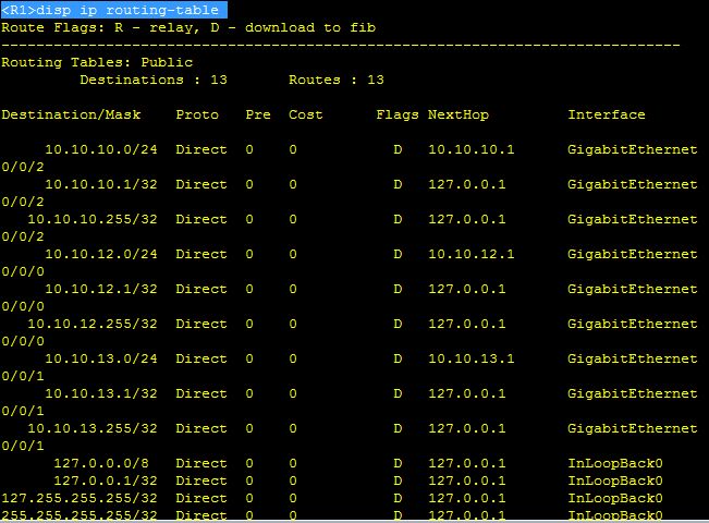 [R1-GigabitEthernet0/0/1]ip address 10.10.13.1 24