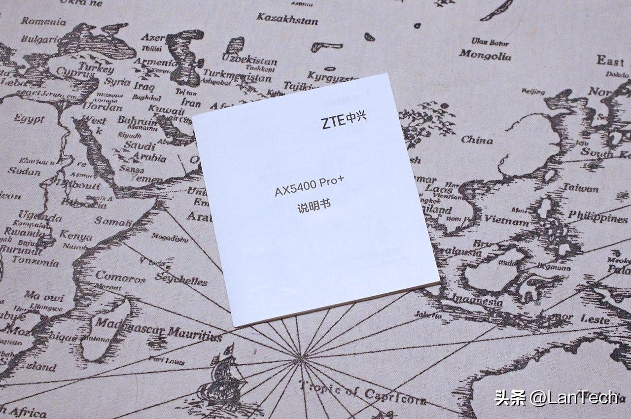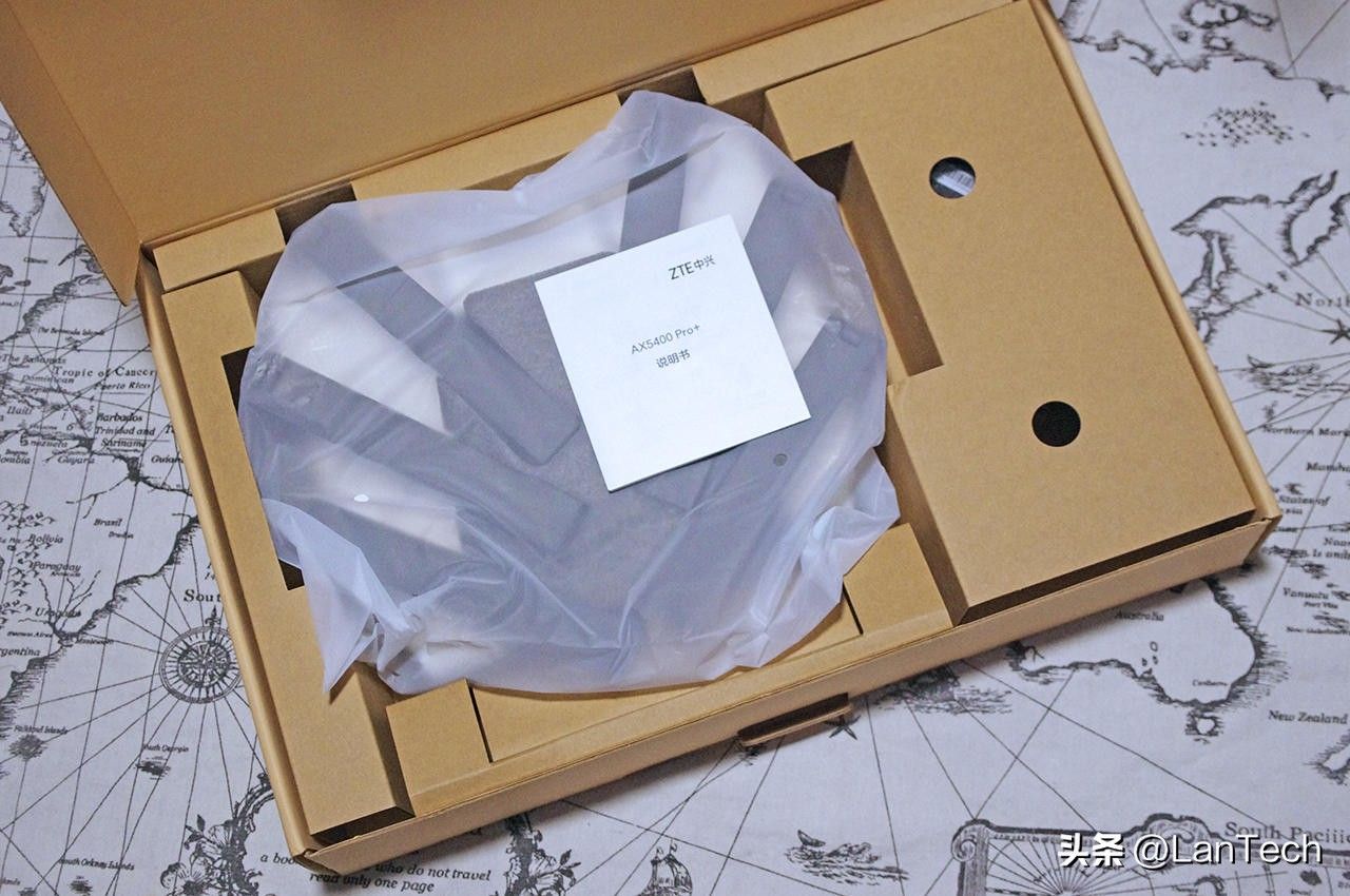 打开包装,可以看到中兴AX5400 Pro+无线路由器的本体和说明书,右侧则是配件: