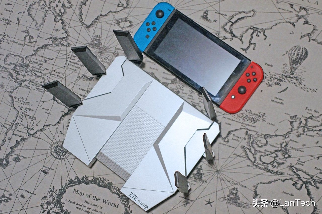 这里可以看到中兴AX5400 Pro+无线路由器的体积还是相当可观的,宽度要超过Switch: