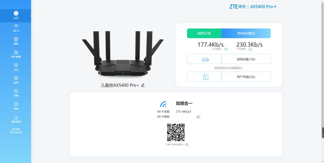 与此同时,AX5400Pro+路由器的操作也非常简易、便捷。在《财经》新媒体测试过程中发现,只需连接家中网线及电脑后,电脑中便会自动识别路由器并弹出中兴路由器设置页面,在设置密码后即可使用。与此同时,还可下载中兴路由App对路由器进行管理,操作页面同样清晰。