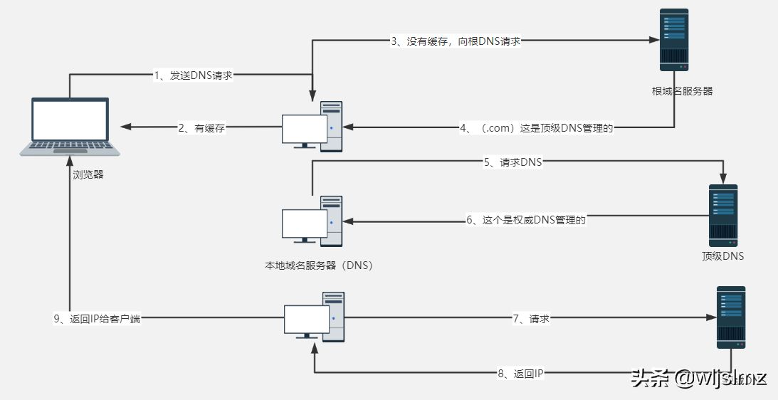 - 当您在 Web 浏览器中输入 www.wljslmz.com 时,它会首先迁移到您的 ISP 的 DNS 服务器或您配置的其他 DNS 服务器。有时,这些 DNS 服务器会缓存域信息,在这种情况下,它只回答信息并让您可以访问该网站。