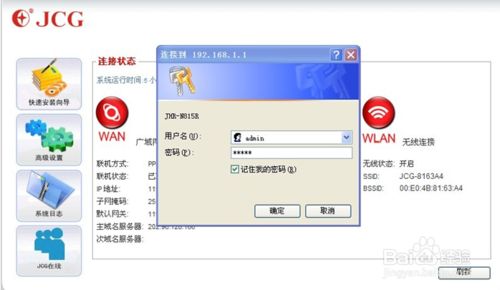首先给JCG捷希无线路由器通电,用网线连接无线路由器和电脑。关掉无线网络,开启本地连接。查看无线路由器的IP地址,然后在网页上输入IP地址,默认IP地址为192.168.1.1