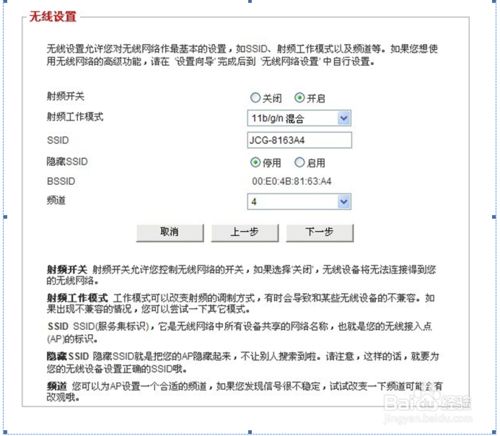 8、然后点击下一步后进入到的是无线设置,可以看到信道、模式、安全选项、SSID等等,一般SSID就是一个名字,可以随便填,然后模式大多用11bgn.无线安全选项,要选择wpa-psk/wpa2-psk,这样安全,免得轻意让人家破解而蹭网。点击下一步就设置成功。