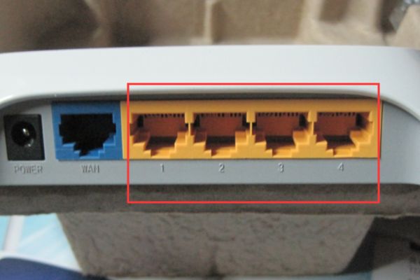 3、最后将交换机接出来的网线接在路由器的LAN端口上(随便哪一个都行),注意不能是WAN端口。