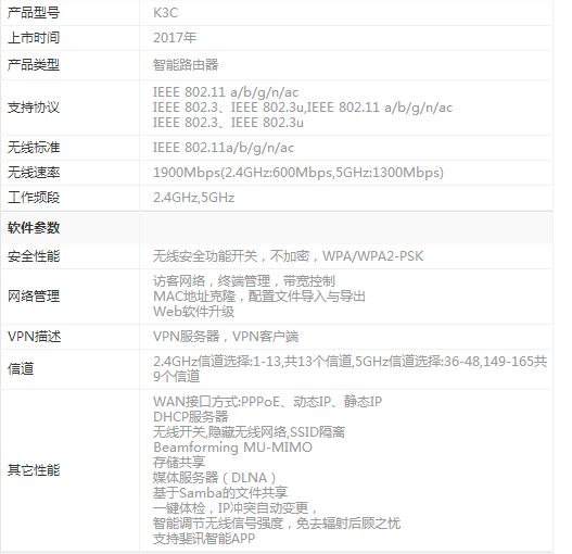 以下是k3c无线路由器的参数