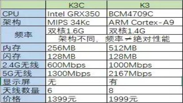 k3c的价格对比k3价格1999便宜了不少(当然最后都是返现设备都是0元)这个不多说,今天只是对比一下两个设备的一些硬件参数: