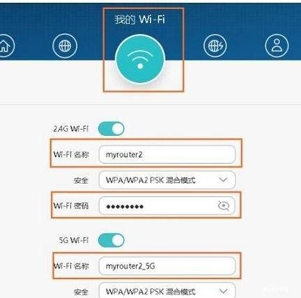 点击“我的Wi-Fi”选项后,可以分别设置2.4GWiFi名称、WiFi密码,5GWiFi名称、WiFi密码,如下图所示