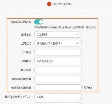 (3)、如果打开“自动识别上网方式”后,检测到“上网方式”是:手动输入IP(静态IP)――>需要填写“IP地址”、“子网掩码”、“默认网关”、“首选DNS服务器”、“备选DNS服务器”――>然后点击“保存”。