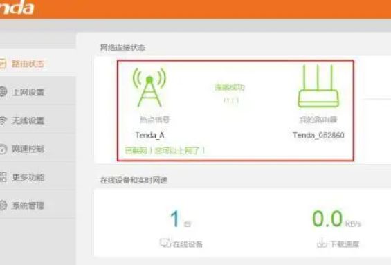 5、此时副路由会自动重启,待重启完后,检查联网状态,如果显示“连接成功”则表示副路由已经成功跟主路由桥接成功。